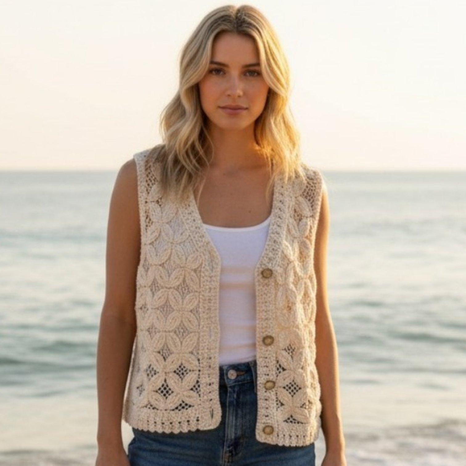 bohemian gilet van 100% gehaakt katoen in gebroken wit 🤍 🌿 One size: passend van S t/m L 🌿 Tijdloos, stijlvol en super makkelijk te combineren 🌿 Perfect over een basic top, jurkje of blouse