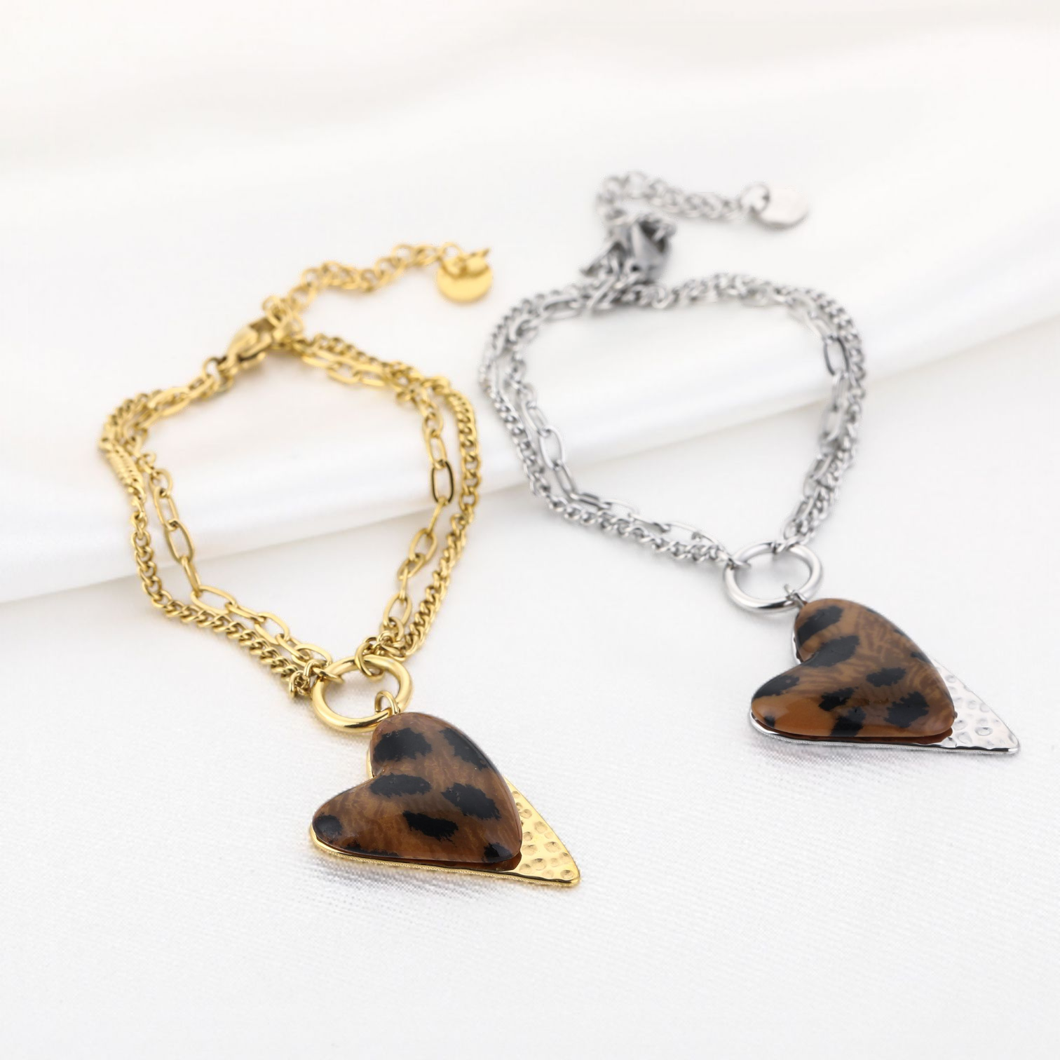 dubbele armband met panterhart hanger Materiaal Stainless Steel Maat 16+3CM