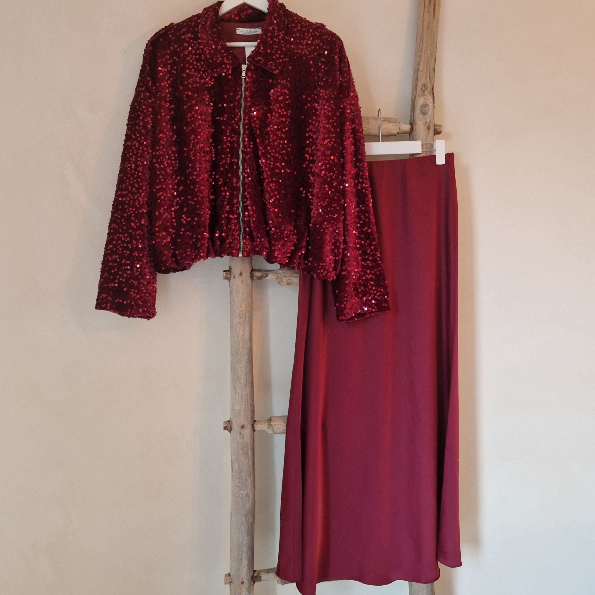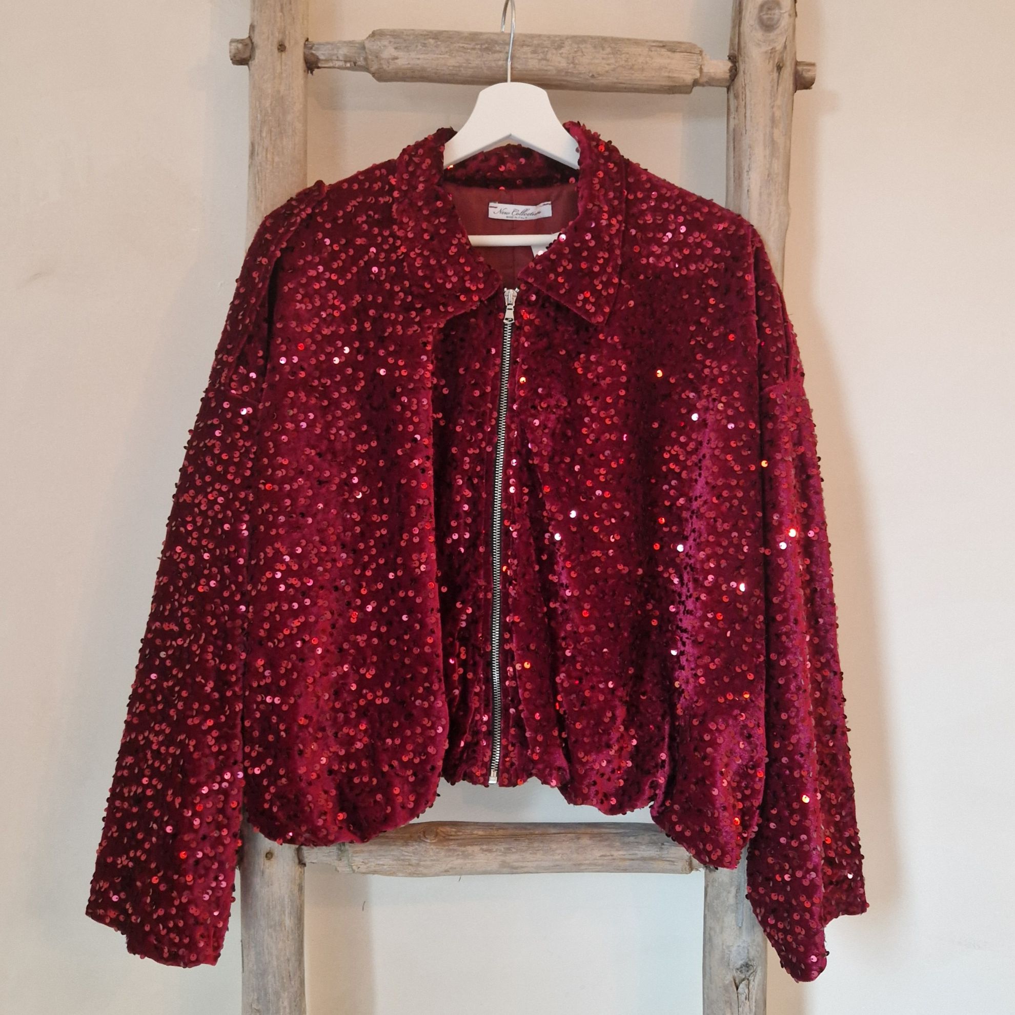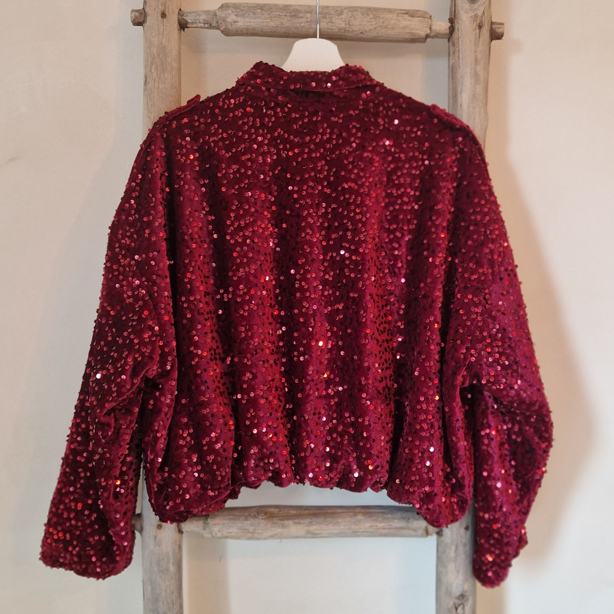 Fluwelen jasje met pailletten Lange mouwen Met ritssluiting Eén maat 36-42 Gemaakt in Italië