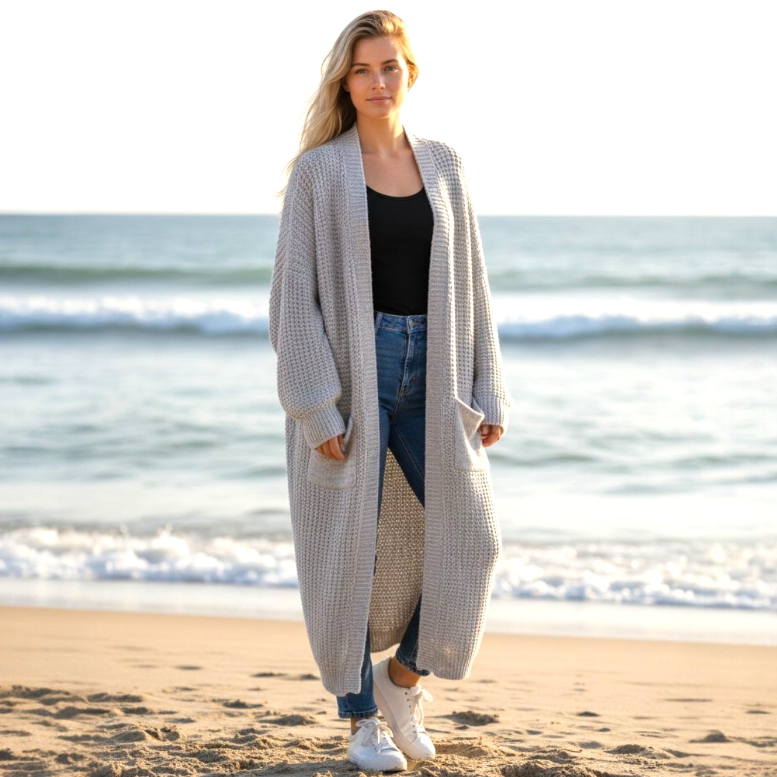 Lange effen vest met lange pofmouwen en 2 functionele zakken Eén maat 36-42 Gemaakt in Italië 100% acryl