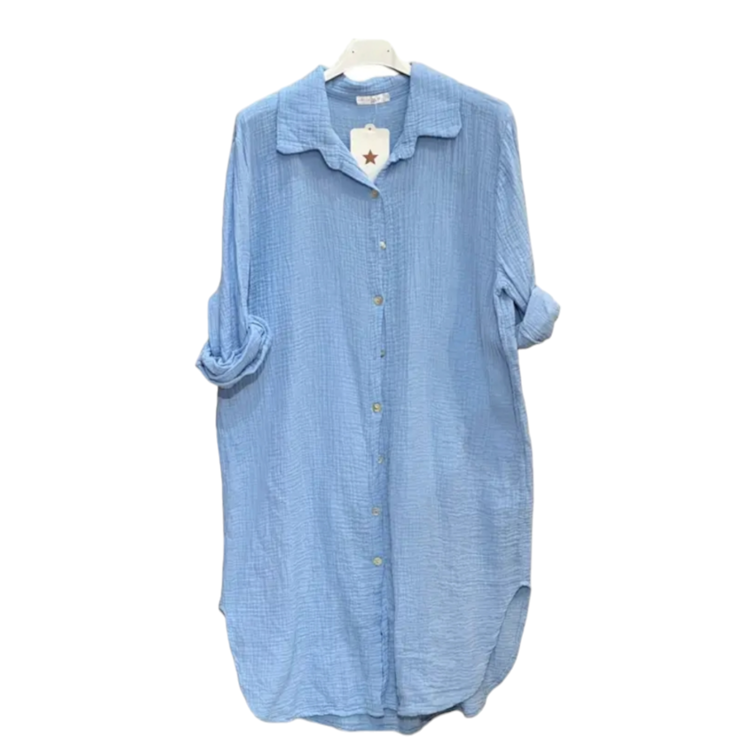Deze hemdjurk is gemaakt van licht, zacht katoengaas en biedt ongeëvenaard comfort en een ontspannen silhouet. Ideaal om in alle seizoenen te dragen. Materiaal: Katoengaas (100% katoen)