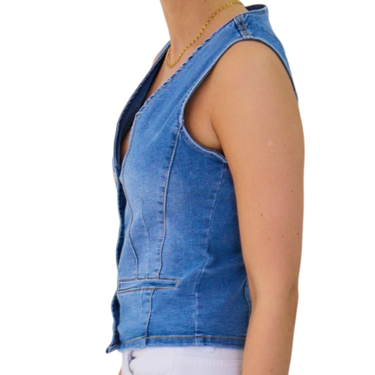 Slim fit, Stretch, Twee valse zijzakken, Knoopsluiting, Mouwloos, Gewassen, Casual. MT S t/m XL Productinformatie Samenstelling: Katoen: 95%