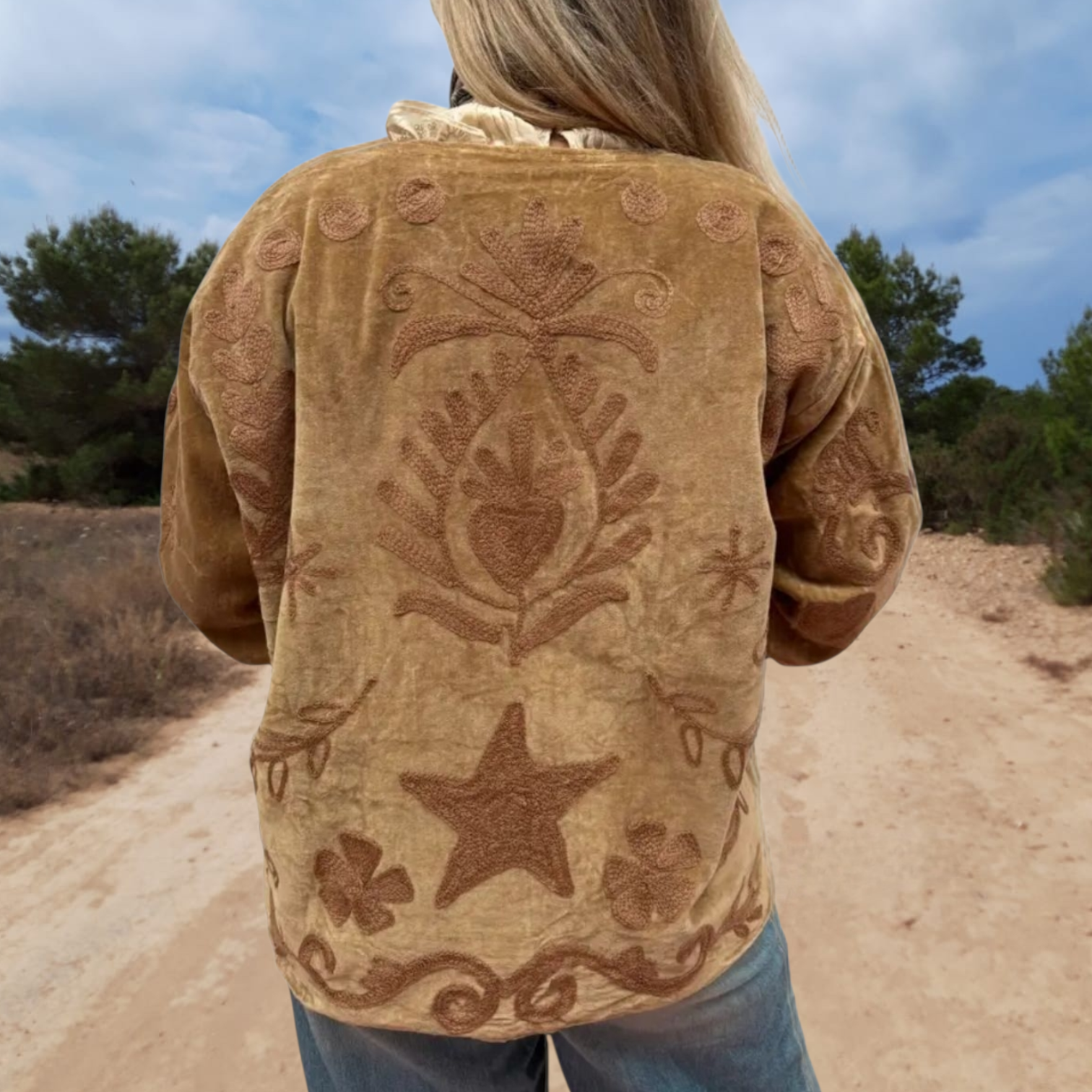 Patronen kunnen altijd iets afwijken van de foto, omdat ieder kledingstuk met de hand is gemaakt. Velvet Jacket is met de hand gemaakt in India, speciaal ontworpen door ToutVintage en geschikt voor wie waarde hecht aan vakmanschap, duurzaamheid en karakter. Elk stuk is uniek en komt uit een gelimiteerde oplage van beperkte exemplaren. Dit jacket is gemaakt van velvet stof en geborduurd met de mooiste garen. Alles is zorgvuldig geselecteerd met respect voor mens en planeet. ๐งถ Details Materiaal: Velvet Kleur: brown Pasvorm: Oversized Maatvoering: One size - geschikt tm maat 46/48 Wasvoorschrift: Handwas-stomerij ๐ Waarom dit item? โ๏ธ Handgemaakt in kleine oplage โ๏ธ Eerlijke productie & duurzame materialen