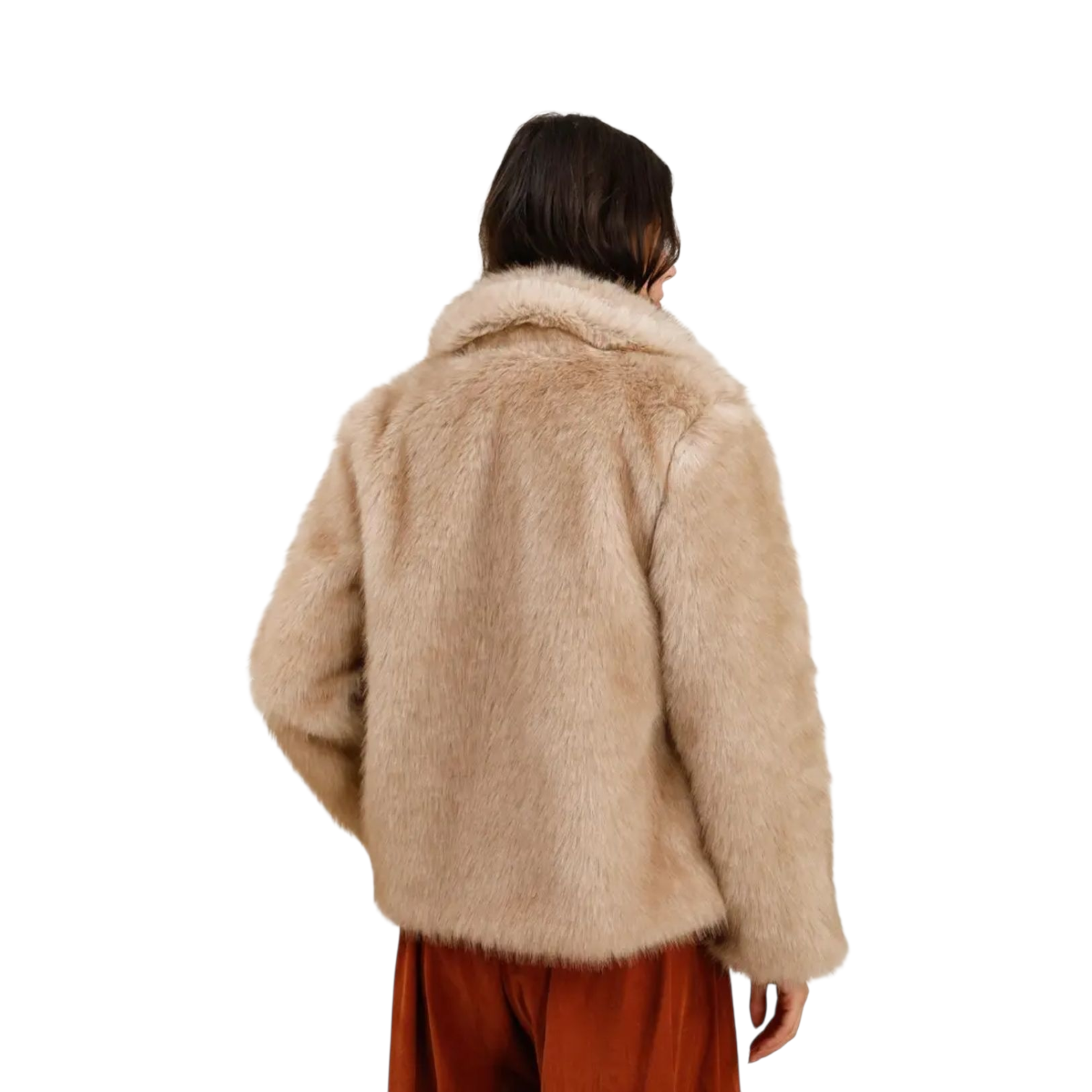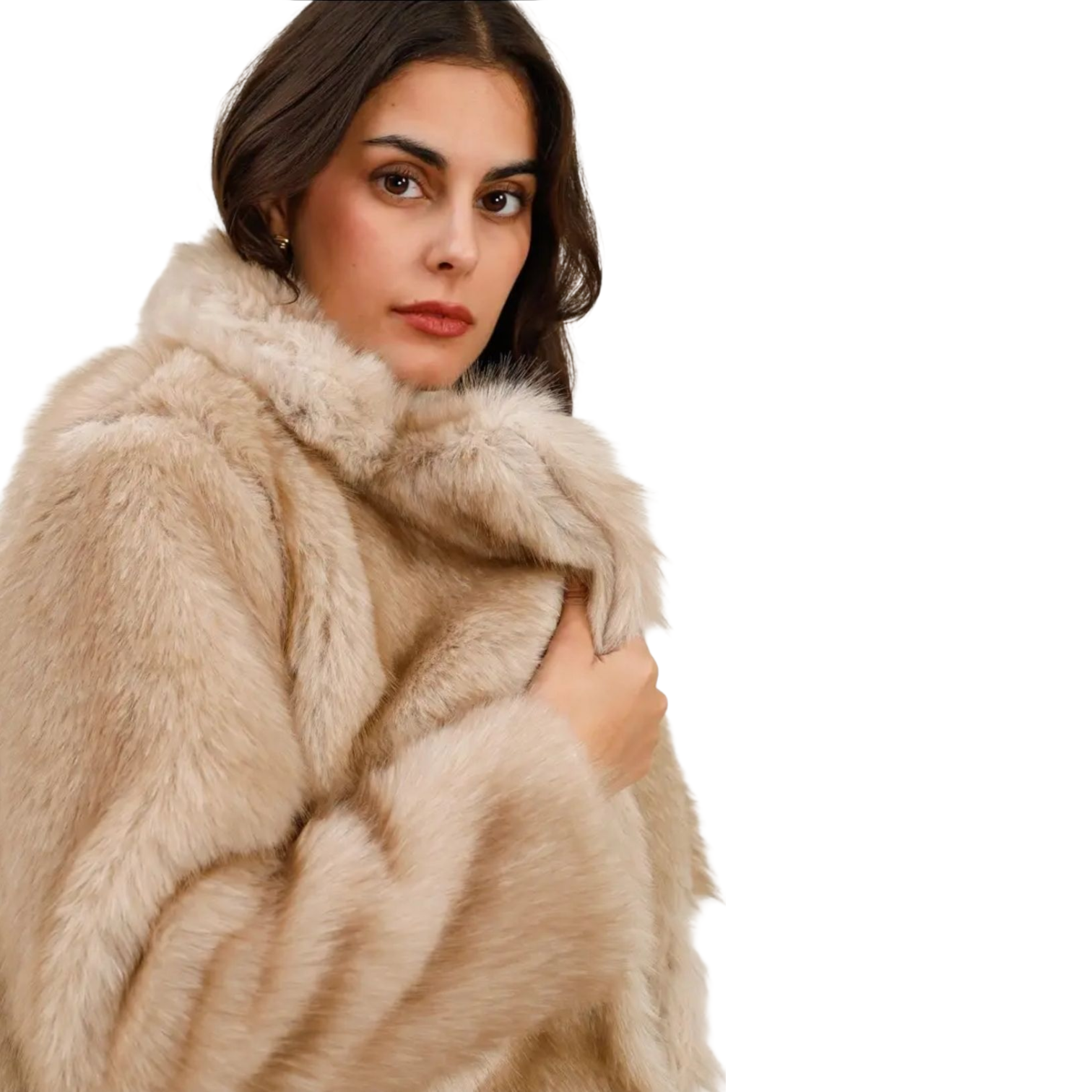 Warm en elegant, Deze jas van 100% polyester bont voegt een verfijnde touch toe aan je outfits. De zachte en volumineuze textuur zorgt voor comfort en stijl, terwijl de moderne snit het een onmisbaar stuk maakt voor het koude seizoen.