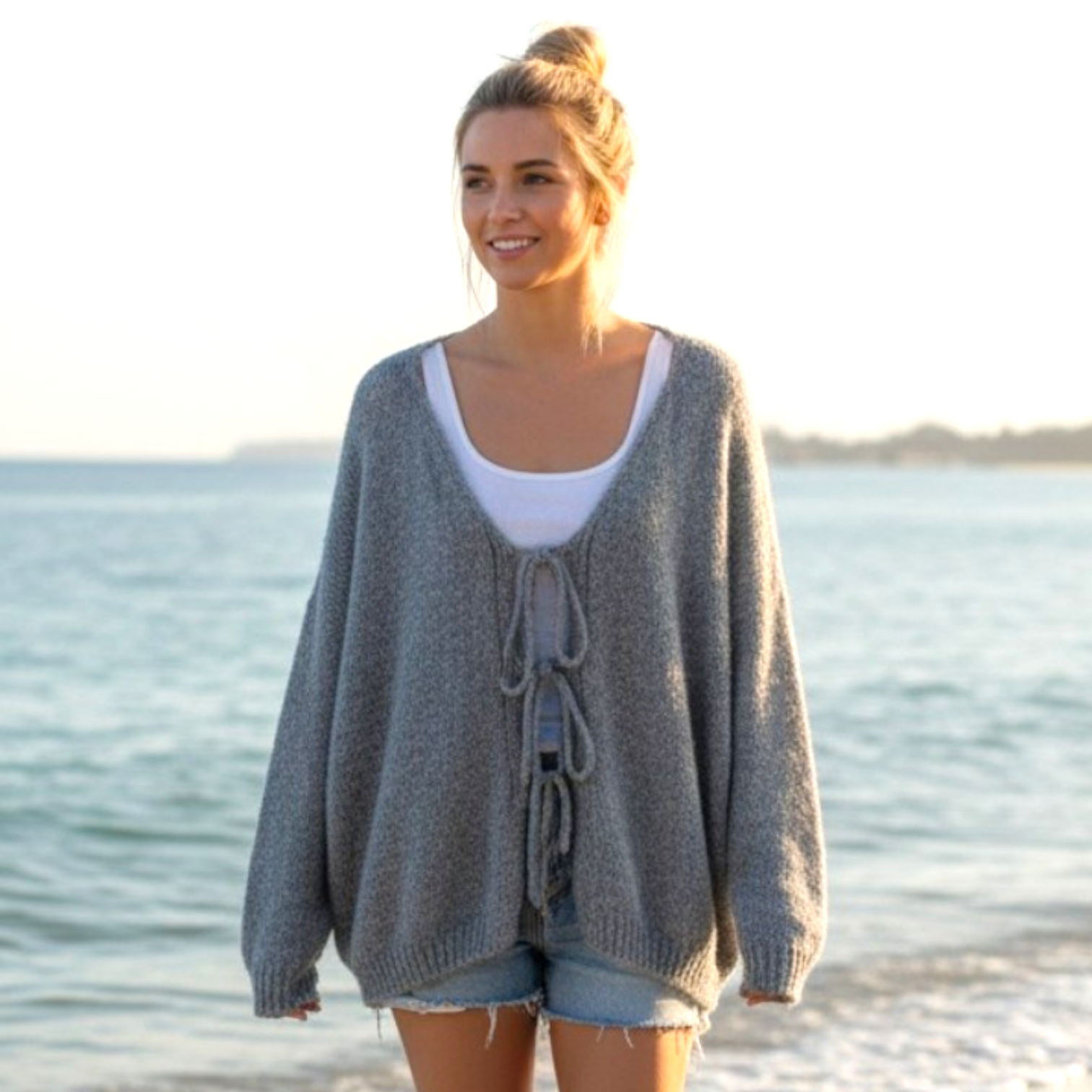 Zacht vest met striksluiting Grijs donker
