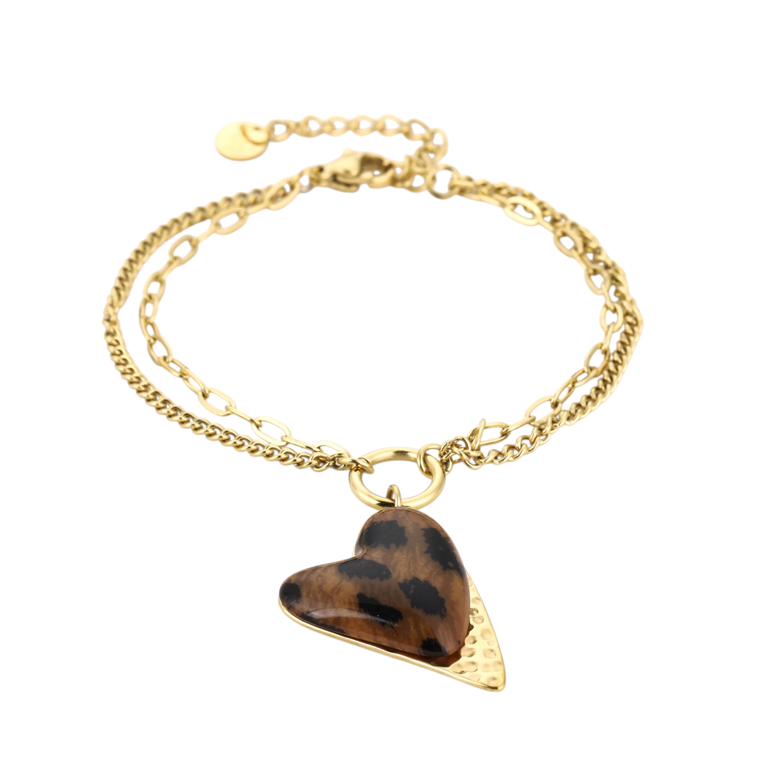 dubbele armband met panterhart hanger Materiaal Stainless Steel Maat 16+3CM