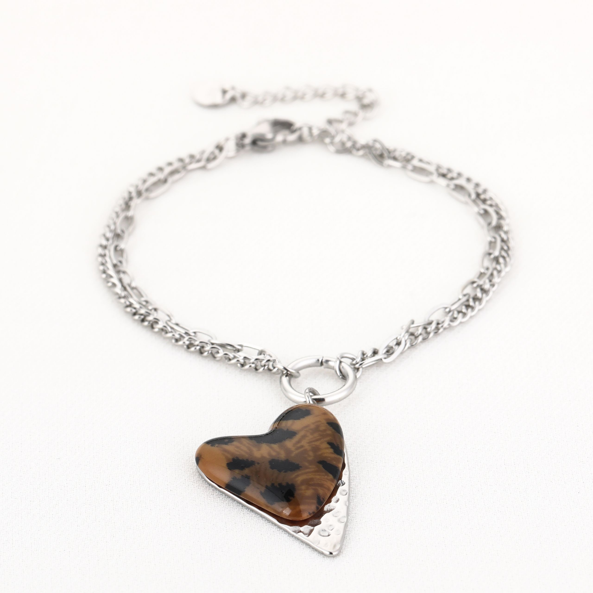 dubbele armband met panterhart hanger Materiaal Stainless Steel Maat 16+3CM