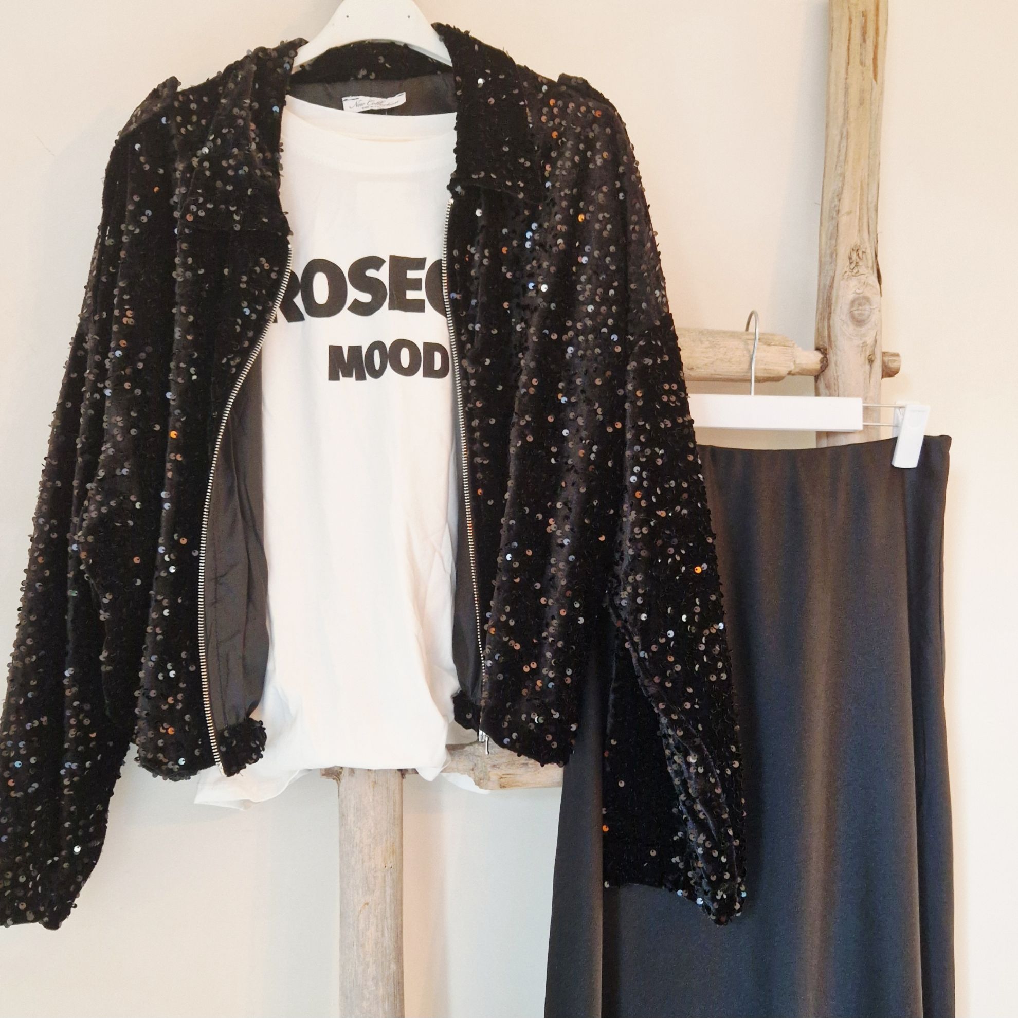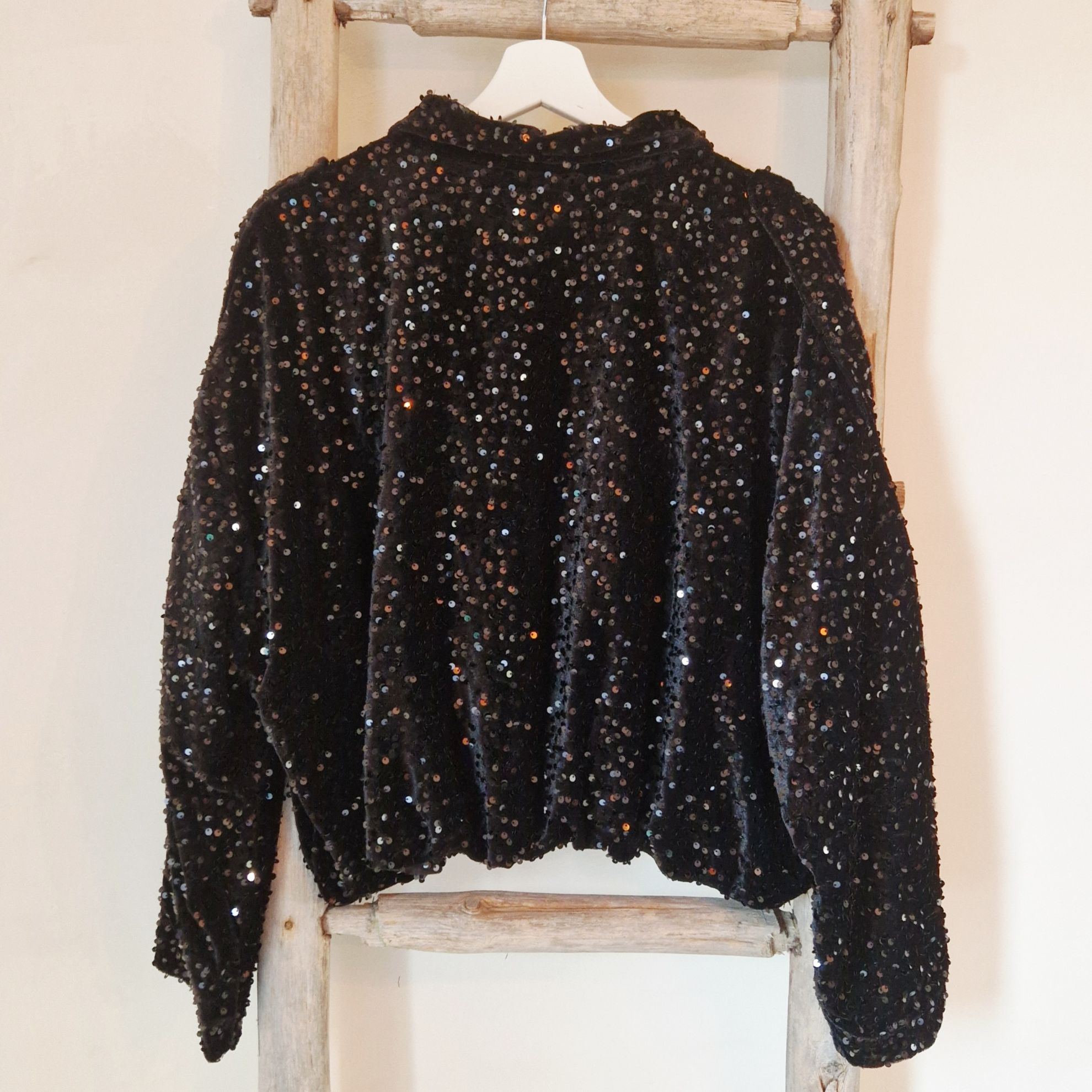 Fluwelen jasje met pailletten Lange mouwen Met ritssluiting Eén maat 36-42 Gemaakt in Italië