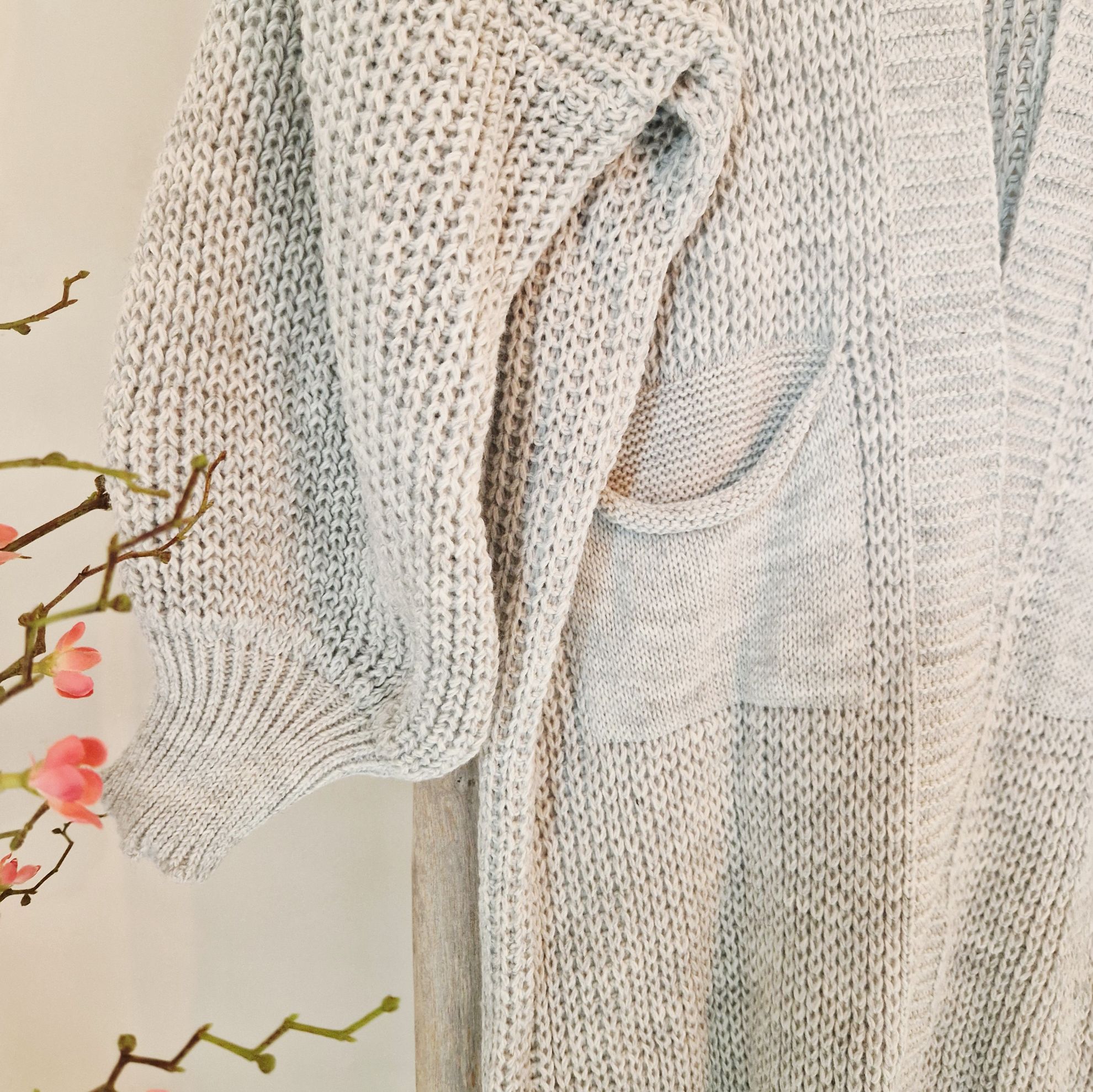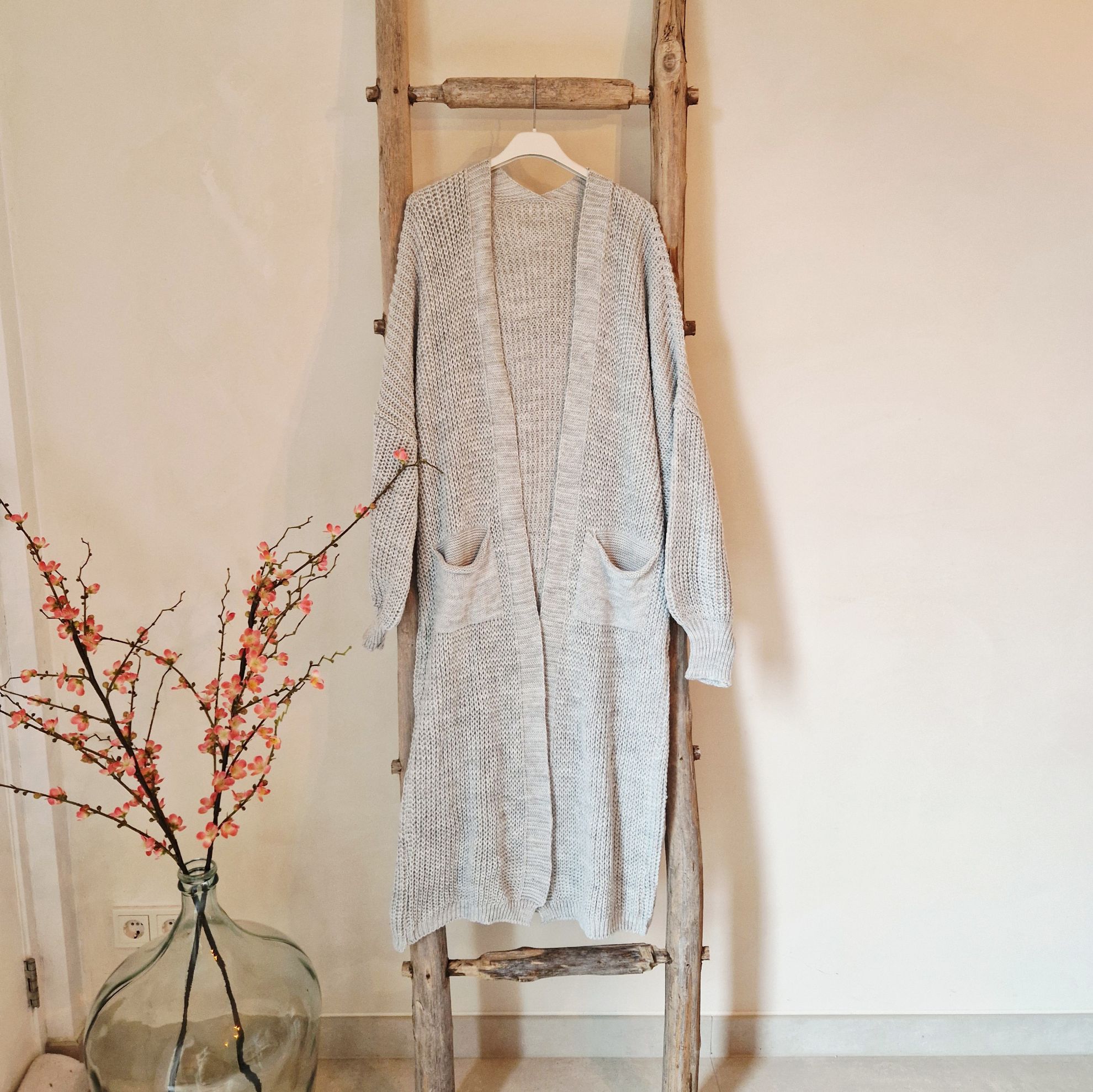 Lange effen vest met lange pofmouwen en 2 functionele zakken Eén maat 36-42 Gemaakt in Italië 100% acryl