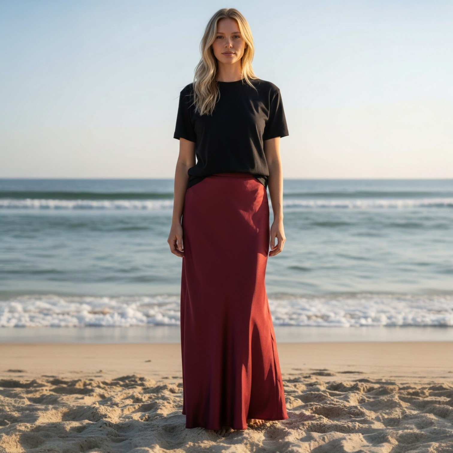 Lange, vloeiende rok Satijn Eén maat 34-40 Gemaakt in Italië