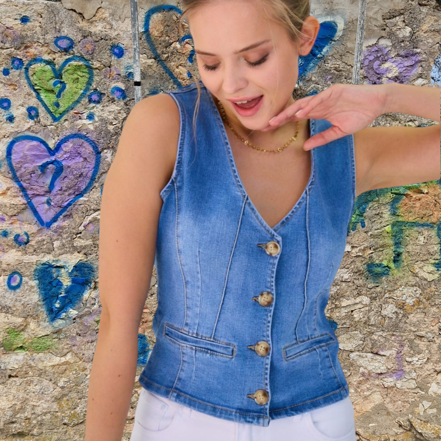 Slim fit, Stretch, Twee valse zijzakken, Knoopsluiting, Mouwloos, Gewassen, Casual. MT S t/m XL Productinformatie Samenstelling: Katoen: 95%