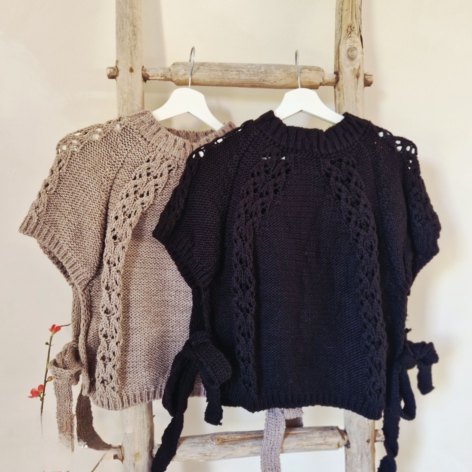 Trui/ poncho met striksluiting en korte mouwen - zwart