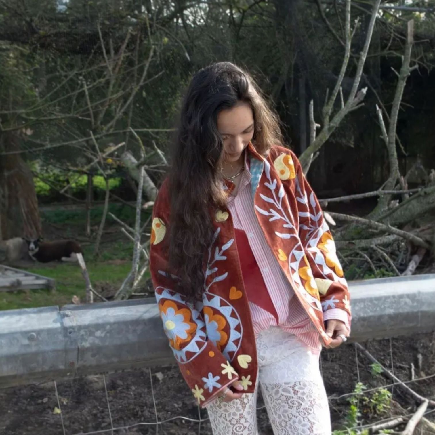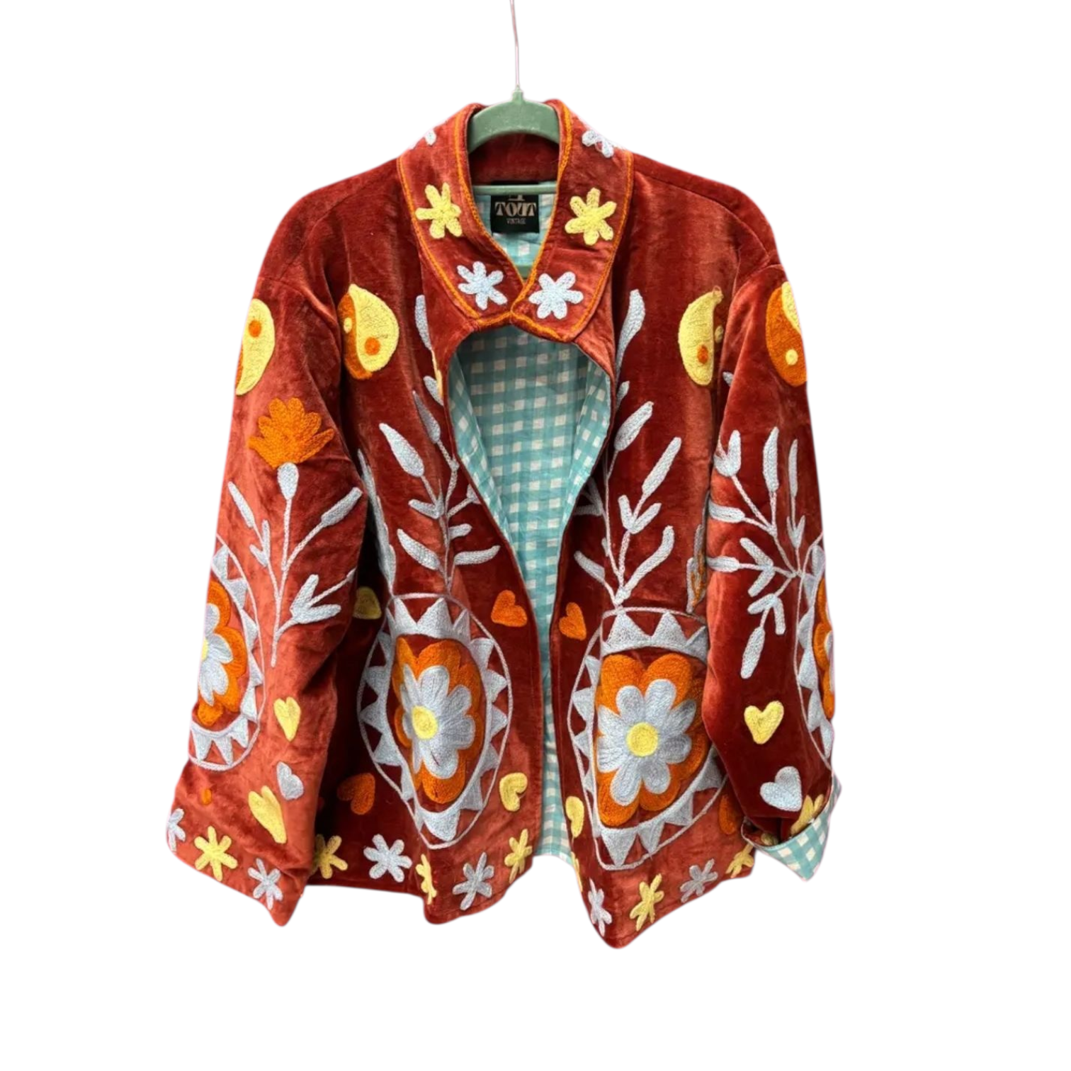 Patronen kunnen altijd iets afwijken van de foto, omdat ieder kledingstuk met de hand is gemaakt. Velvet yingyang is met de hand gemaakt in India, speciaal ontworpen door ToutVintage en geschikt voor wie waarde hecht aan vakmanschap, duurzaamheid en karakter. Elk stuk is uniek en komt uit een gelimiteerde oplage van slechts 250 exemplaren. Dit jacket is gemaakt van velvet stof en geborduurd met de mooiste garen. Alles is zorgvuldig geselecteerd met respect voor mens en planeet. ๐งถ Details Materiaal: Velvet Kleur: brique Pasvorm: Normal Maatvoering: One size - geschikt tm maat 44 Wasvoorschrift: Handwas-stomerij ๐ Waarom dit item? โ๏ธ Handgemaakt in kleine oplage โ๏ธ Eerlijke productie & duurzame materialen