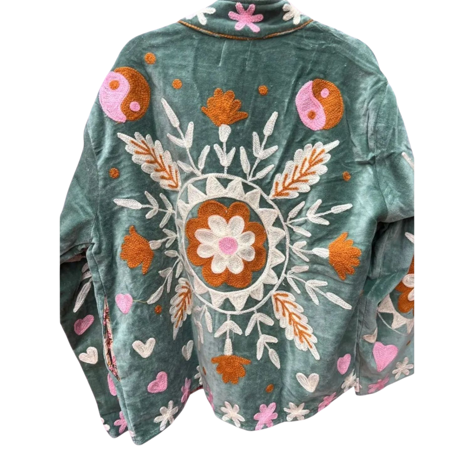 Patronen kunnen altijd iets afwijken van de foto, omdat ieder kledingstuk met de hand is gemaakt. Velvet yingyang is met de hand gemaakt in India, speciaal ontworpen door ToutVintage en geschikt voor wie waarde hecht aan vakmanschap, duurzaamheid en karakter. Elk stuk is uniek en komt uit een gelimiteerde oplage van slechts 250 exemplaren. Dit jacket is gemaakt van velvet stof en geborduurd met de mooiste garen. Alles is zorgvuldig geselecteerd met respect voor mens en planeet. ๐งถ Details Materiaal: Velvet Kleur: brique Pasvorm: Normal Maatvoering: One size - geschikt tm maat 44 Wasvoorschrift: Handwas-stomerij ๐ Waarom dit item? โ๏ธ Handgemaakt in kleine oplage โ๏ธ Eerlijke productie & duurzame materialen