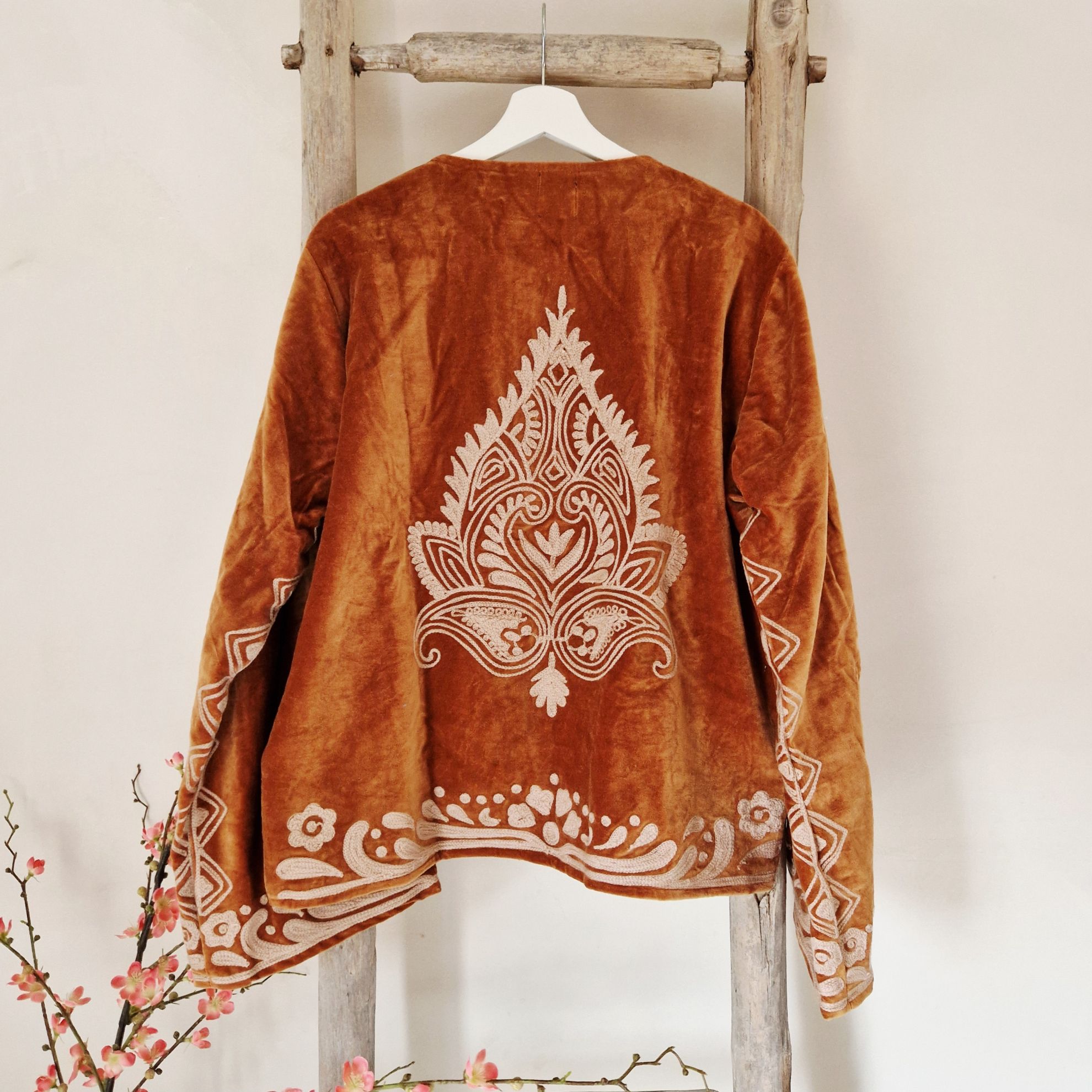 Patronen kunnen altijd iets afwijken van de foto, omdat ieder kledingstuk met de hand is gemaakt. Velvet Jacket is met de hand gemaakt in India, speciaal ontworpen door ToutVintage en geschikt voor wie waarde hecht aan vakmanschap, duurzaamheid en karakter. Elk stuk is uniek en komt uit een gelimiteerde oplage van beperkte exemplaren. Dit jacket is gemaakt van velvet stof en geborduurd met de mooiste garen. Alles is zorgvuldig geselecteerd met respect voor mens en planeet. ๐งถ Details Materiaal: Velvet Kleur: brown Pasvorm: Oversized Maatvoering: One size - geschikt tm maat 46 Wasvoorschrift: Handwas-stomerij ๐ Waarom dit item? โ๏ธ Handgemaakt in kleine oplage โ๏ธ Eerlijke productie & duurzame materialen